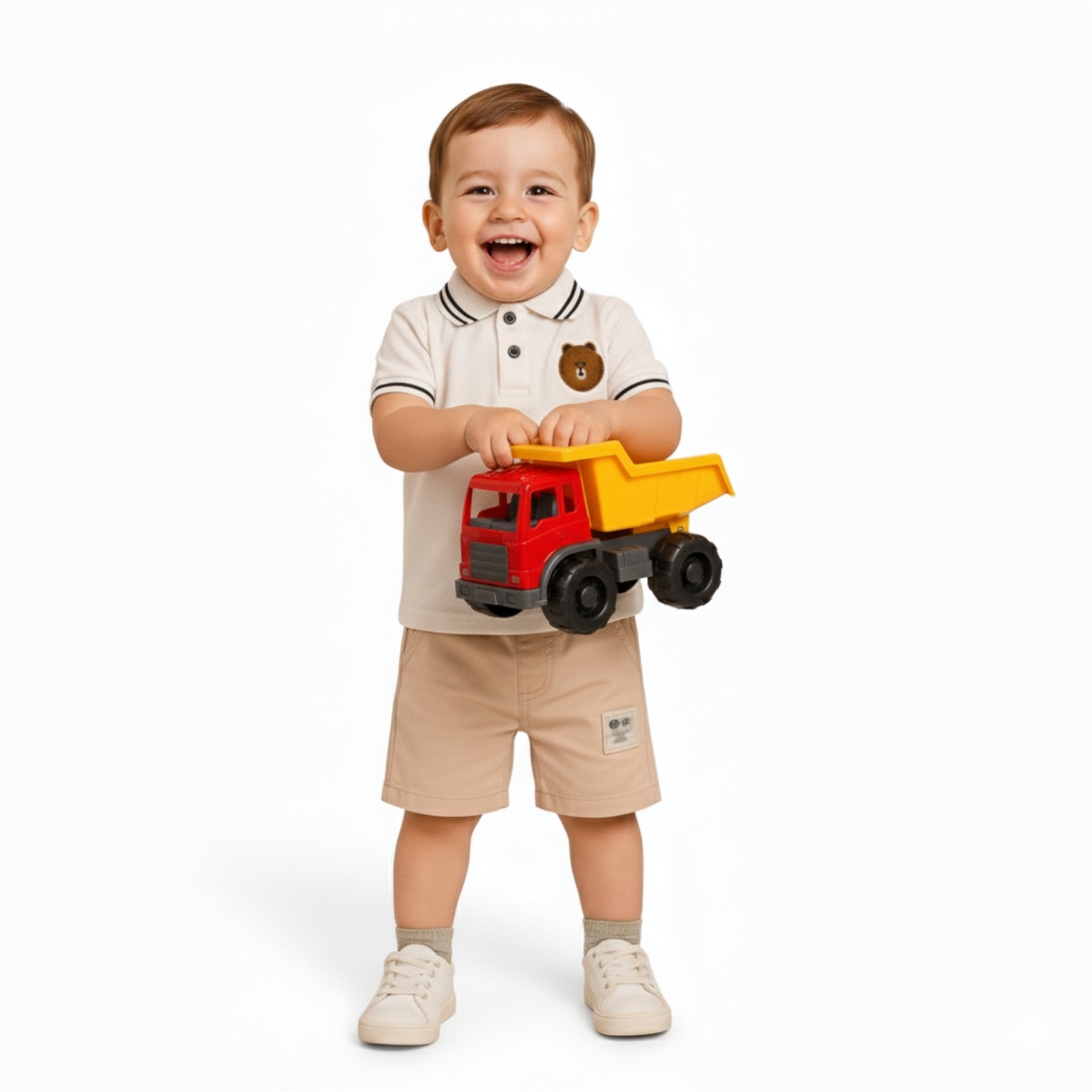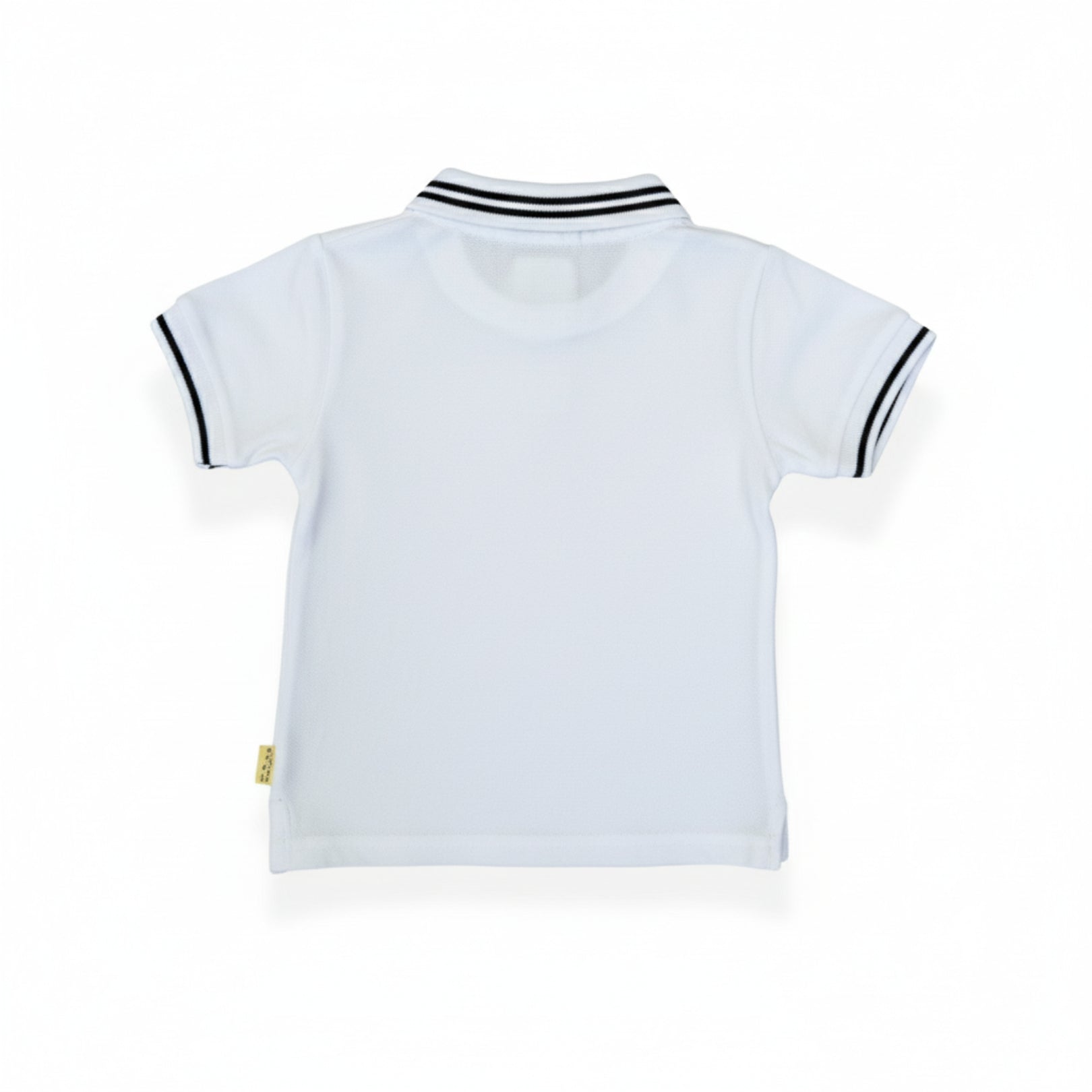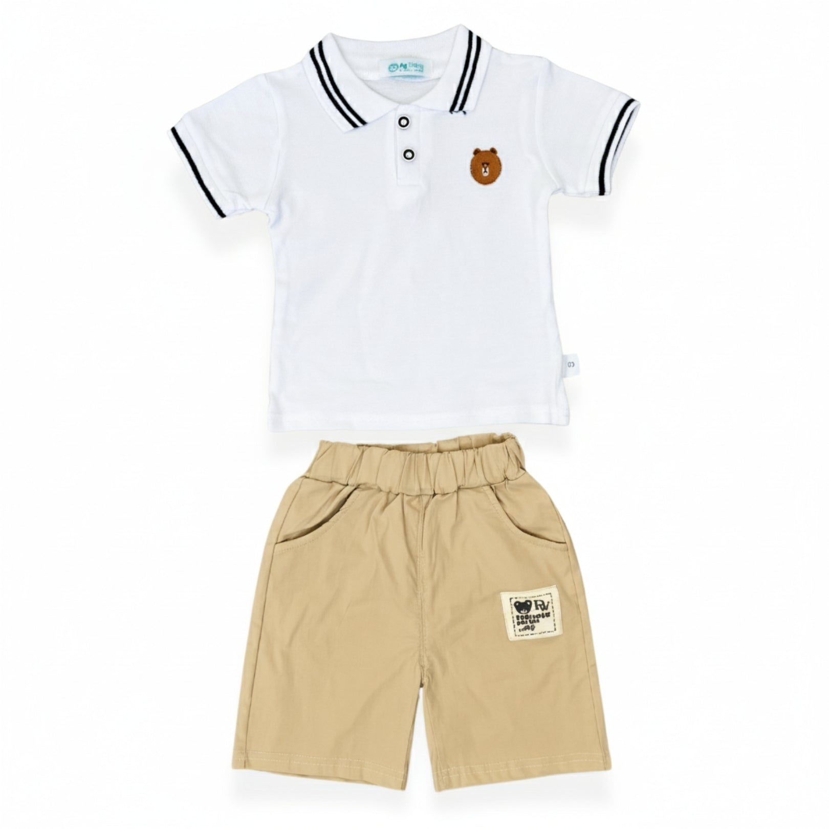 - Polera con cuello y botones frontales, y bordado de la cara de un osito en el frente.
