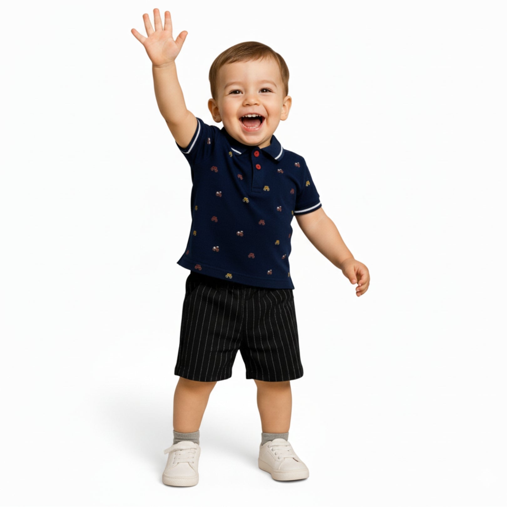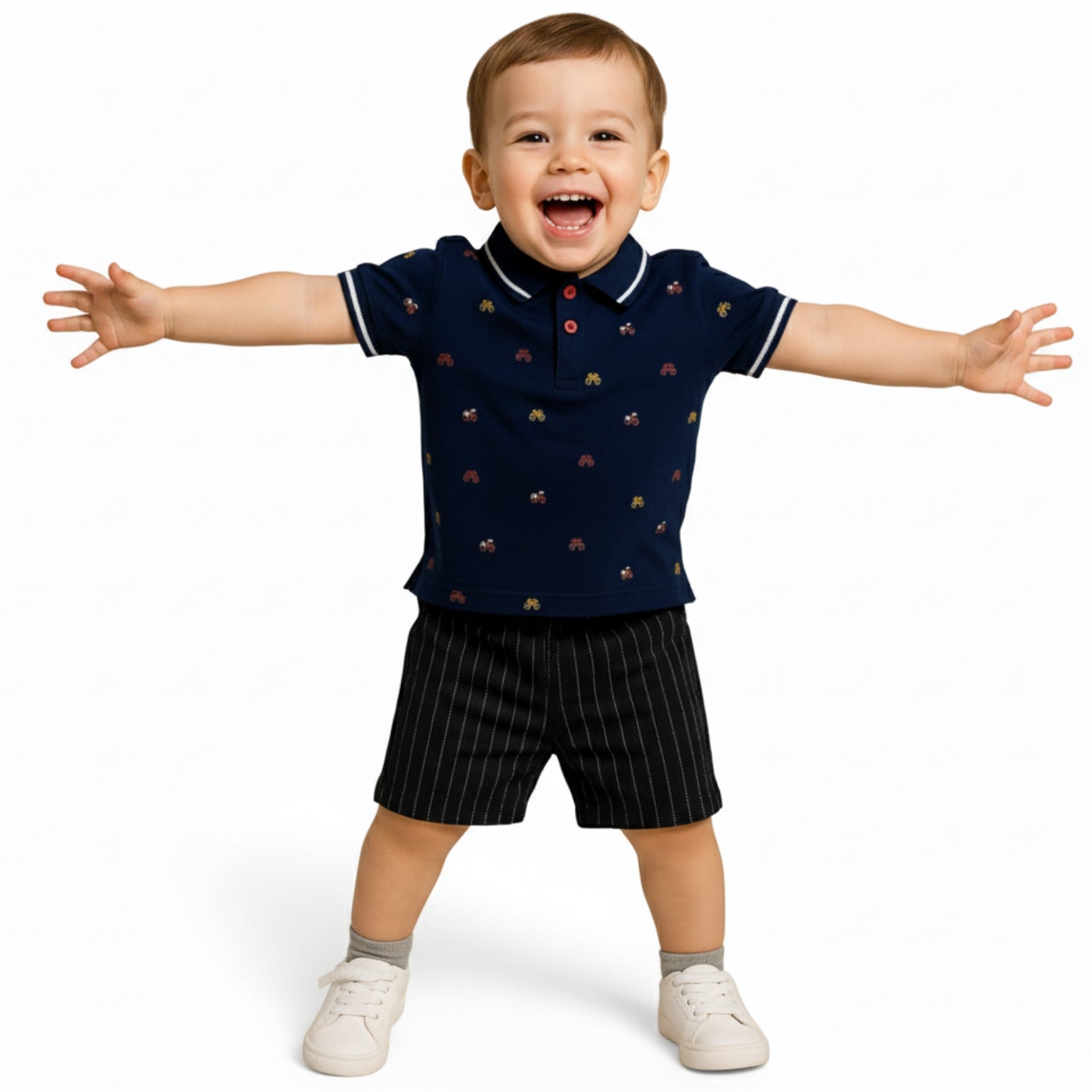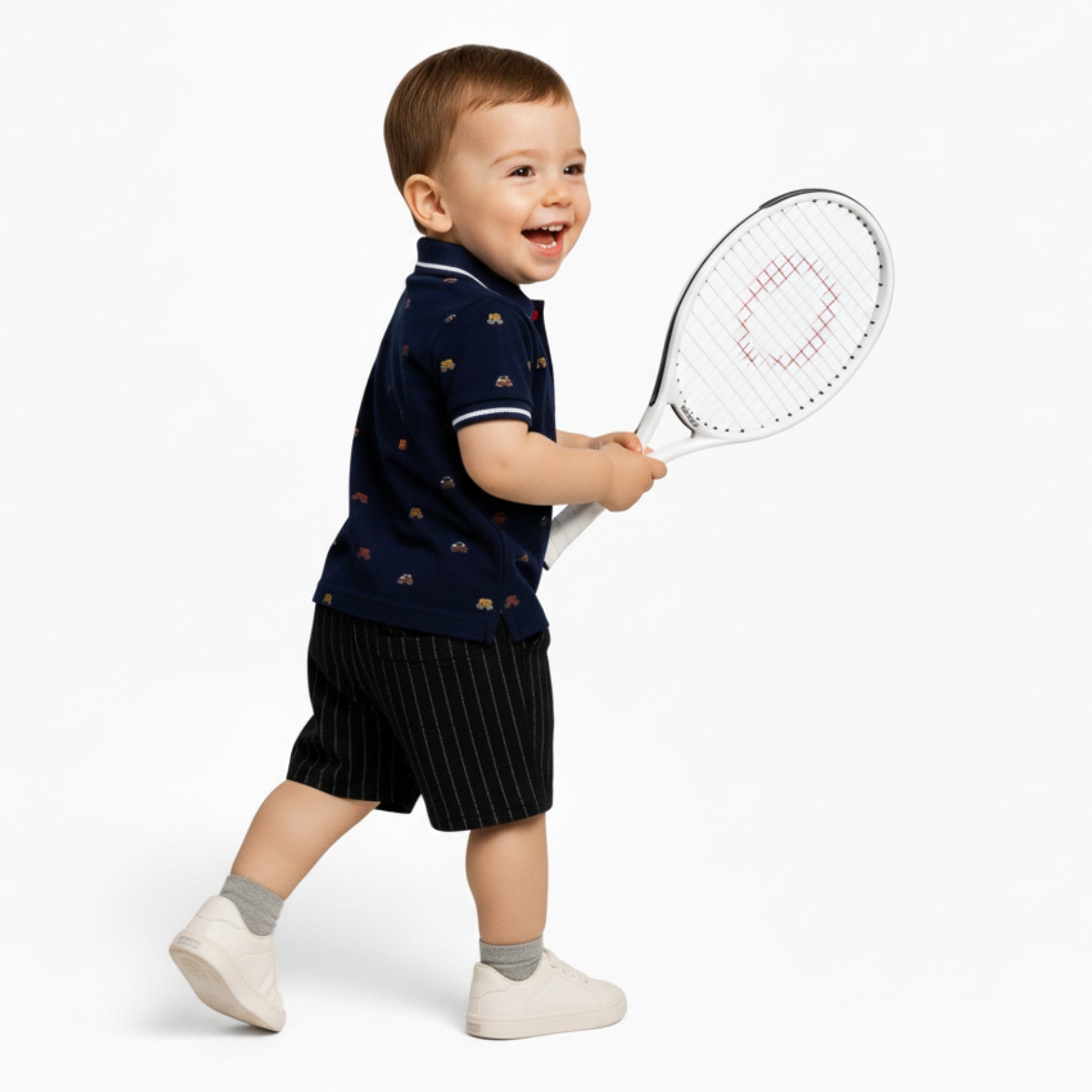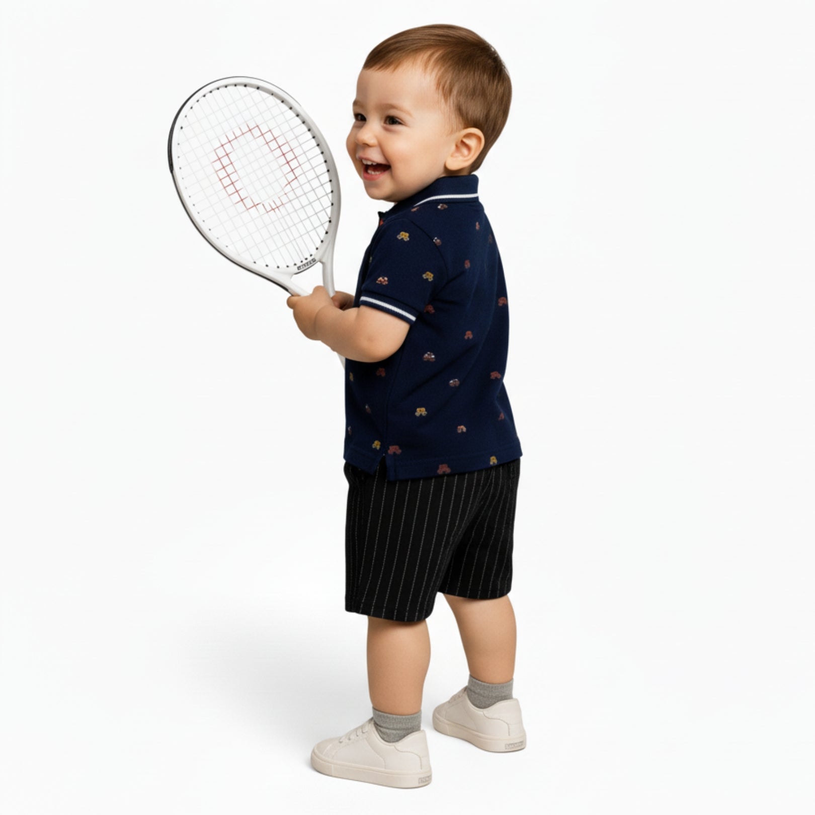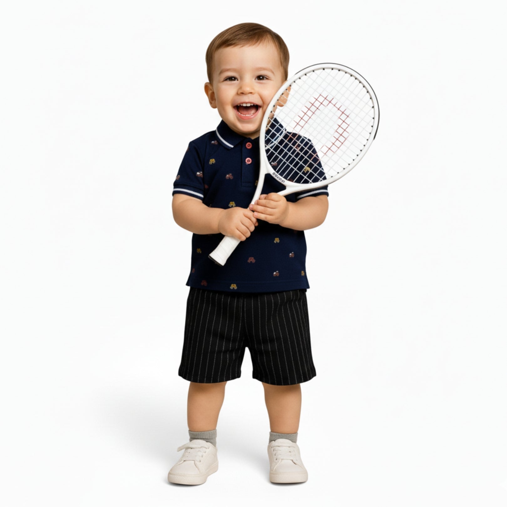 - Material: Polera de algodón pique (100%) y short de tela ligera y fresca.