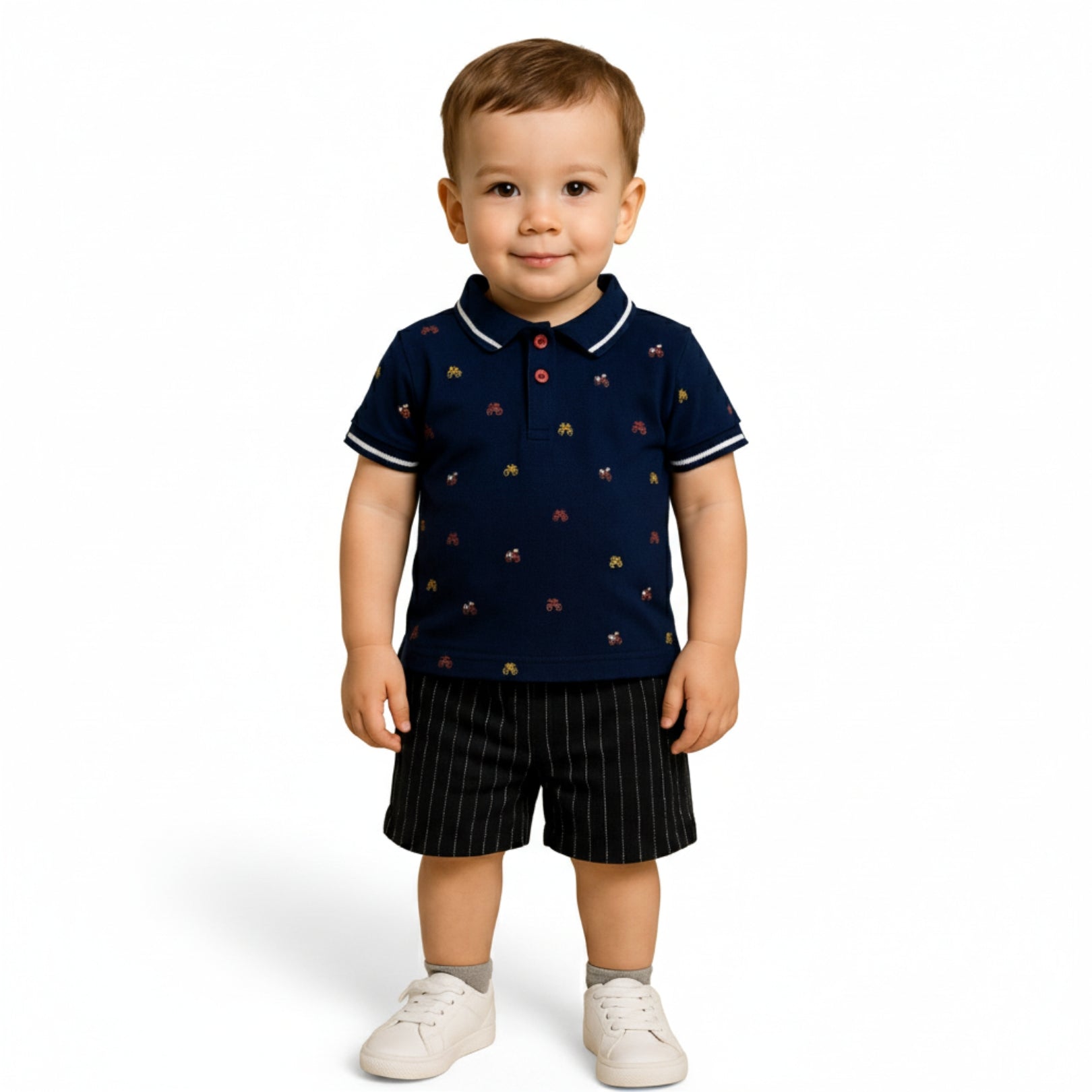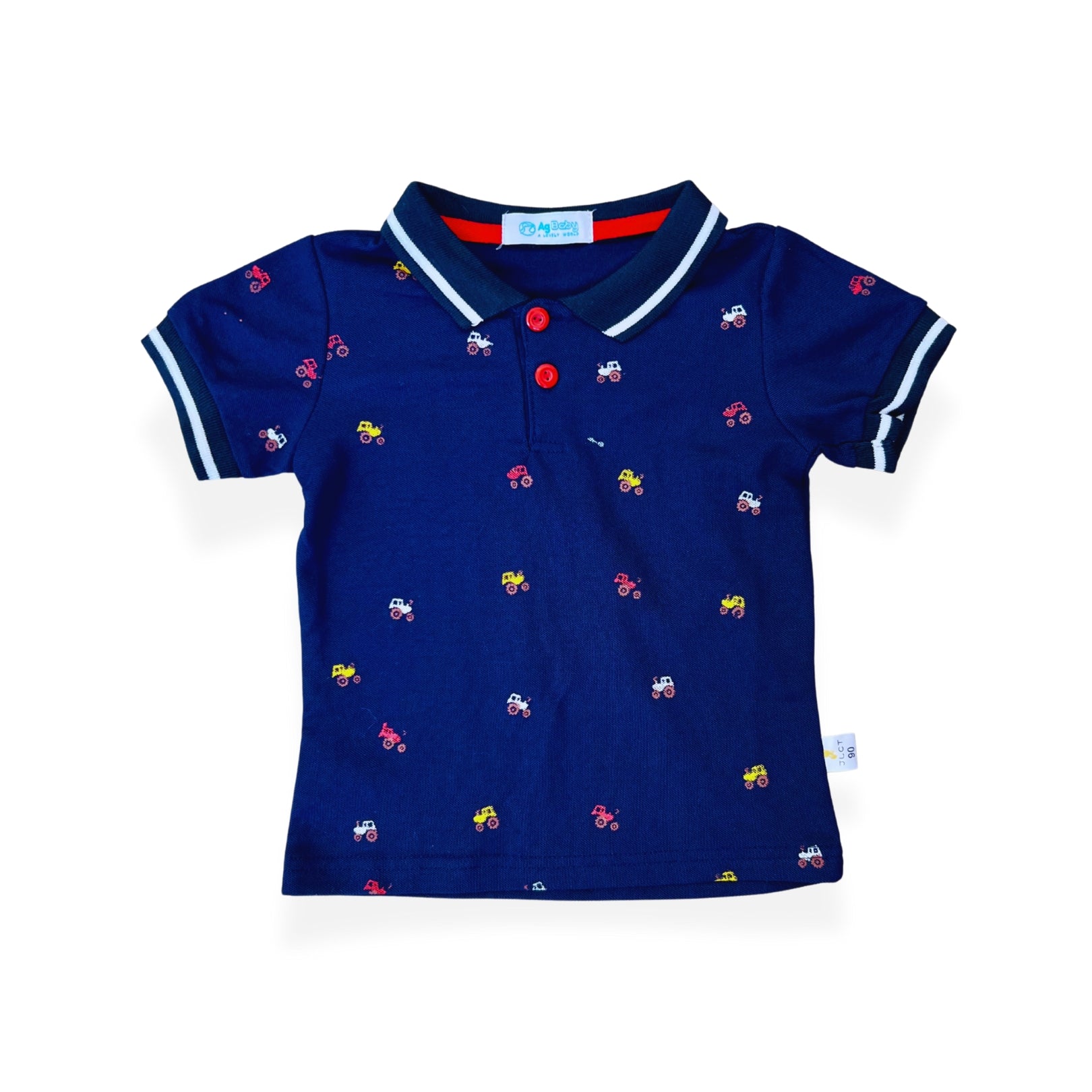 - Polera con estampado de tractores en toda la prenda, tanto en el frente como en la parte trasera.